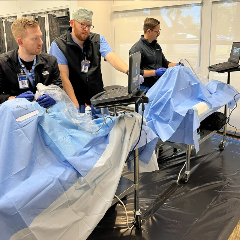 The Mastering Regional Anesthesia Techniques course is designed for healthcare professionals seeking to master the skills of regional anesthesia. The curriculum integrates both our former Regional Anesthesia Essential Techniques and Advanced Techniques courses, offering a more comprehensive education on ultrasound guided nerve blocks. Through the combination of online didactic modules, hands-on practice with cadavers utilizing Maverick’s patented pulsatile system, and live models, participants will refine their skills under the guidance of experienced instructors providing a well-rounded and immersive learning experience.