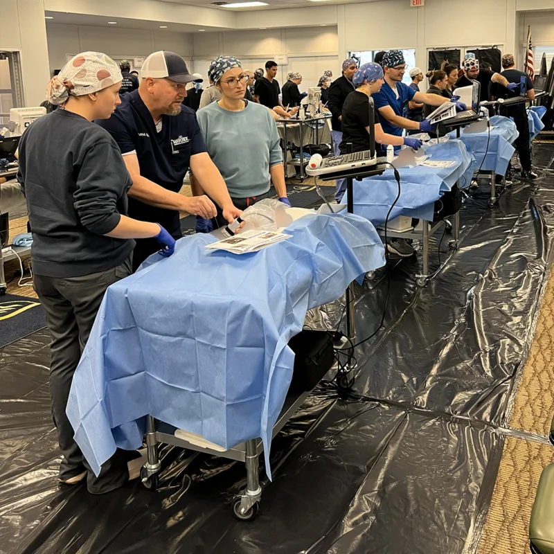 Maverick utilizes the “flipped classroom” style of education in which students will complete their interactive online didactic modules prior to scheduled lab dates. Students will practice their skills using our patented pulsatile cadavers and live models in a hands-on learning environment with expert Maverick instructors.
