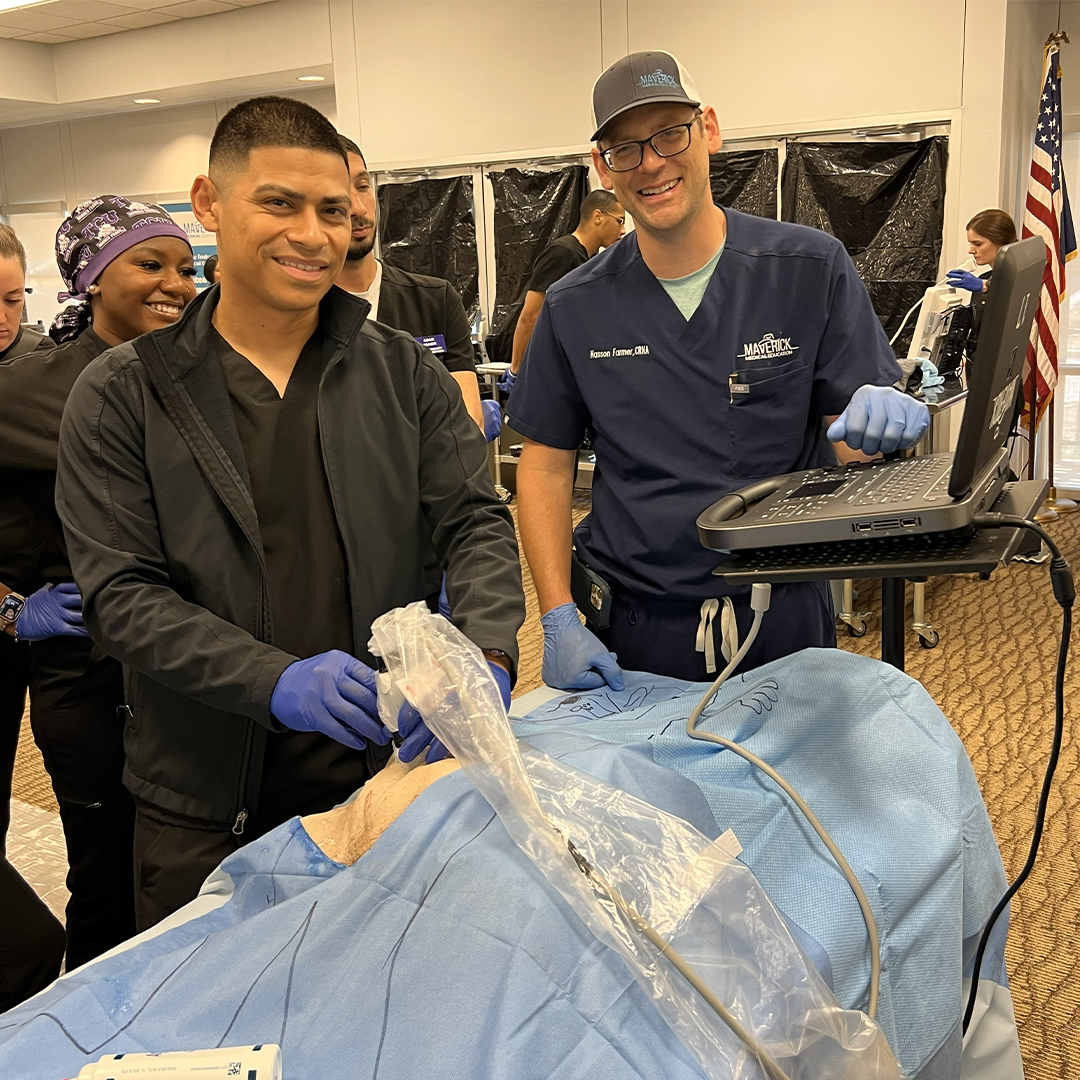 Maverick Medical Education offers top-notch courses that focus on ultrasound-guided nerve blocks and point-of-care ultrasound (POCUS) assessment. Our courses provide additional education on pharmacology, anatomy, physiology, pathophysiology, and the use of ultrasound when performing regional nerve blocks and POCUS. These courses exceed the new COA requirements for training SRNAs!